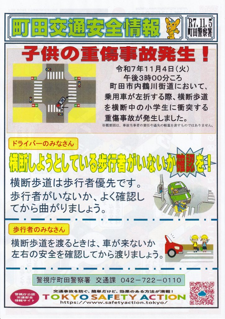 鶴一小「通学路安全運転呼びかけ隊」3月通信👮‼️